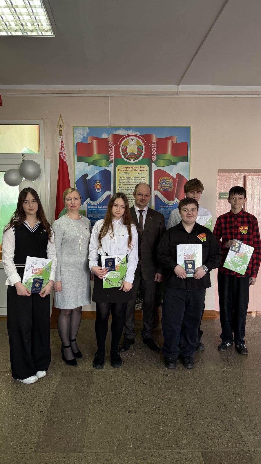 Также учащиеся и педагоги приняли активное участие в республиканской акции "Я - гражданин Республики Беларусь", приуроченной к Дню Конституции Республики Беларусь. Председателем Радошковичского сельского исполнительного комитета Сороко Сергеем Александровичем учащимся, которым исполнилось 14 лет, был вручен подарок президента Республики Беларусь А.Г.Лукашенко - книга "Я - гражданин Республики Беларусь", памятные подарки и главный документ - паспорт гражданина Республики Беларусь.