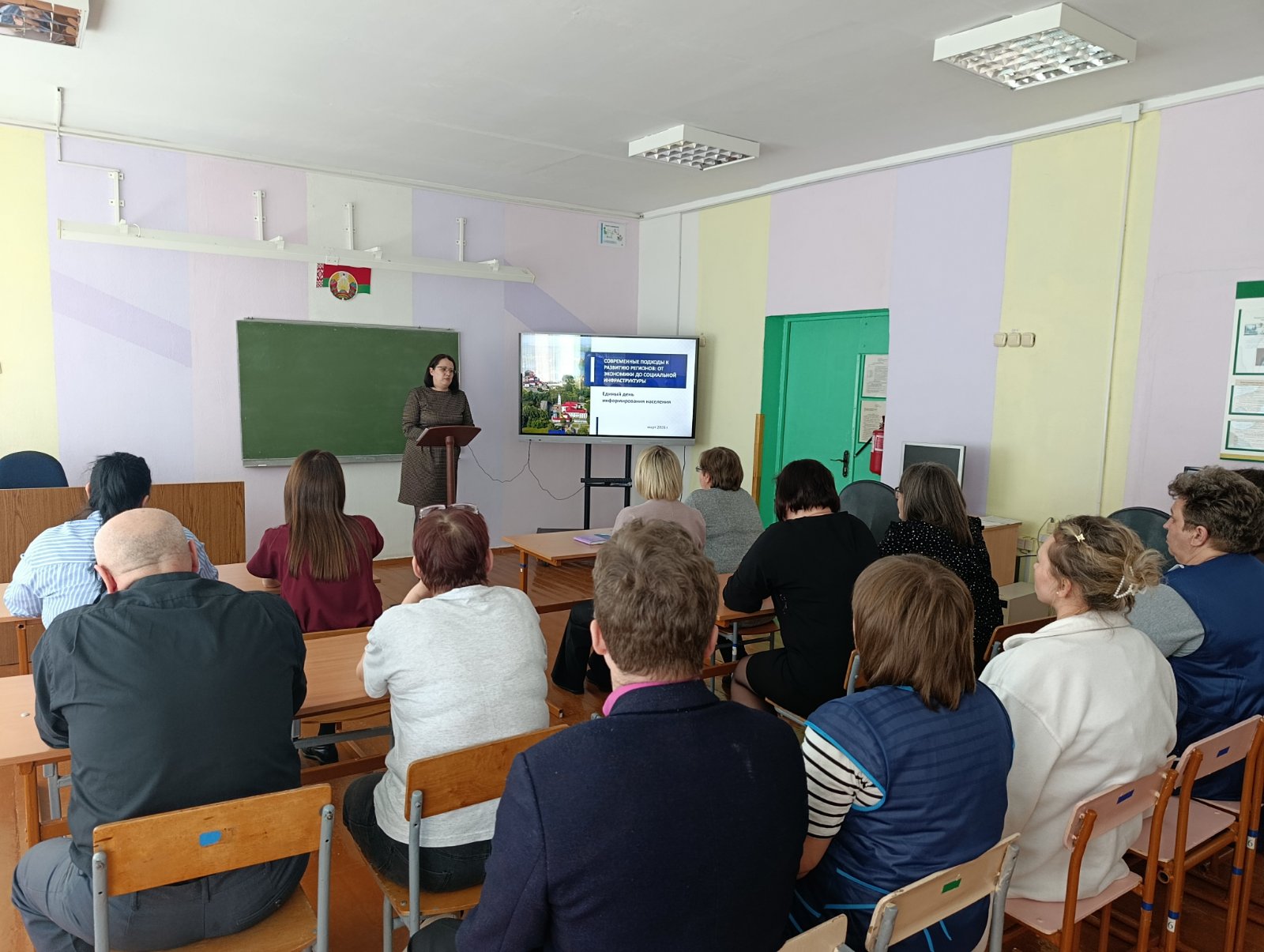 19.03.2026 в ГУО "Граничская базовая школа Молодечненского района" прошел единый день информирования на тему "Современные подходы к развитию регионов". Перед трудовым коллективом выступила заместитель директора по основной деятельности Москалевич Р.Ч., которая ознакомила присутствующих с достижениями в республике и в регионе за 5 лет (2021-2025 г.г.) по разным отраслям. Встреча прошла в формате диалога. Присутствующие также смогли задать и обсудить и другие интересующие вопросы.