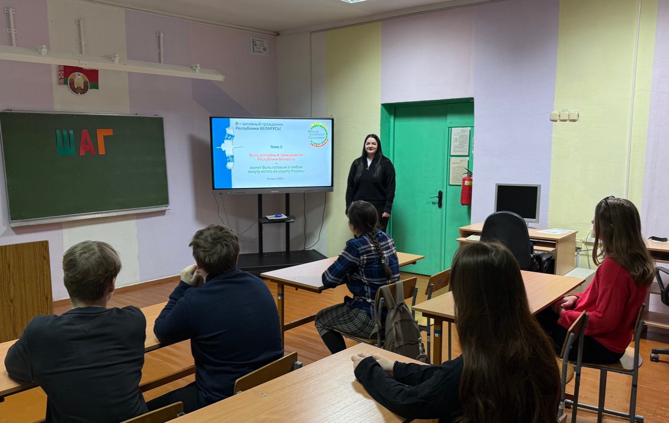 29.01.2026 в ГУО "Граничская базовая школа Молодечненского района" в рамках информационно-образовательного проекта «ШАГ» для учащихся 8 и 9 классов была организована лекция-беседа «Быть достойным гражданином Республики Беларусь - значит быть готовым в любую минуту встать на защиту Родины!». Ребята узнали, какие виды войск стоят на защите Республики Беларусь, где готовят курсантов, а также о роли военно-патриотических клубов в патриотическом воспитании молодежи. Ребята активно участвовали в обсуждении вопросов по данной тематике, анализировали информацию, делали выводы.
