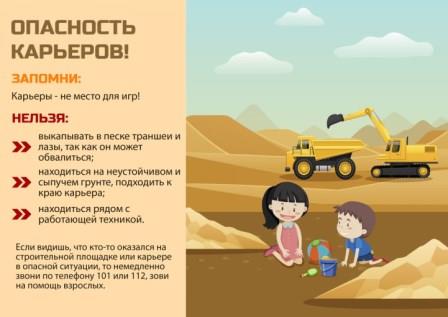 Нельзя затевать любые игры с песком и нельзя заходить на территорию карьеров: надо опасаться возможного обвала песчаных пластов, это угрожает жизни!